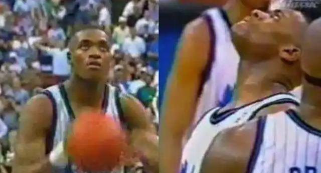 最出名的要屬1995年總決賽G1,魔術(shù)的尼克-安德森詭異的“4罰不中”。當(dāng)時終場前10多秒,魔術(shù)領(lǐng)先火箭3分,安德森卻詭異地2罰不中?;鸺俅螌Π驳律敢?guī),他又2罰不中。此后,火箭后衛(wèi)肯尼-史密斯命中絕平三分,魔術(shù)最終輸球。